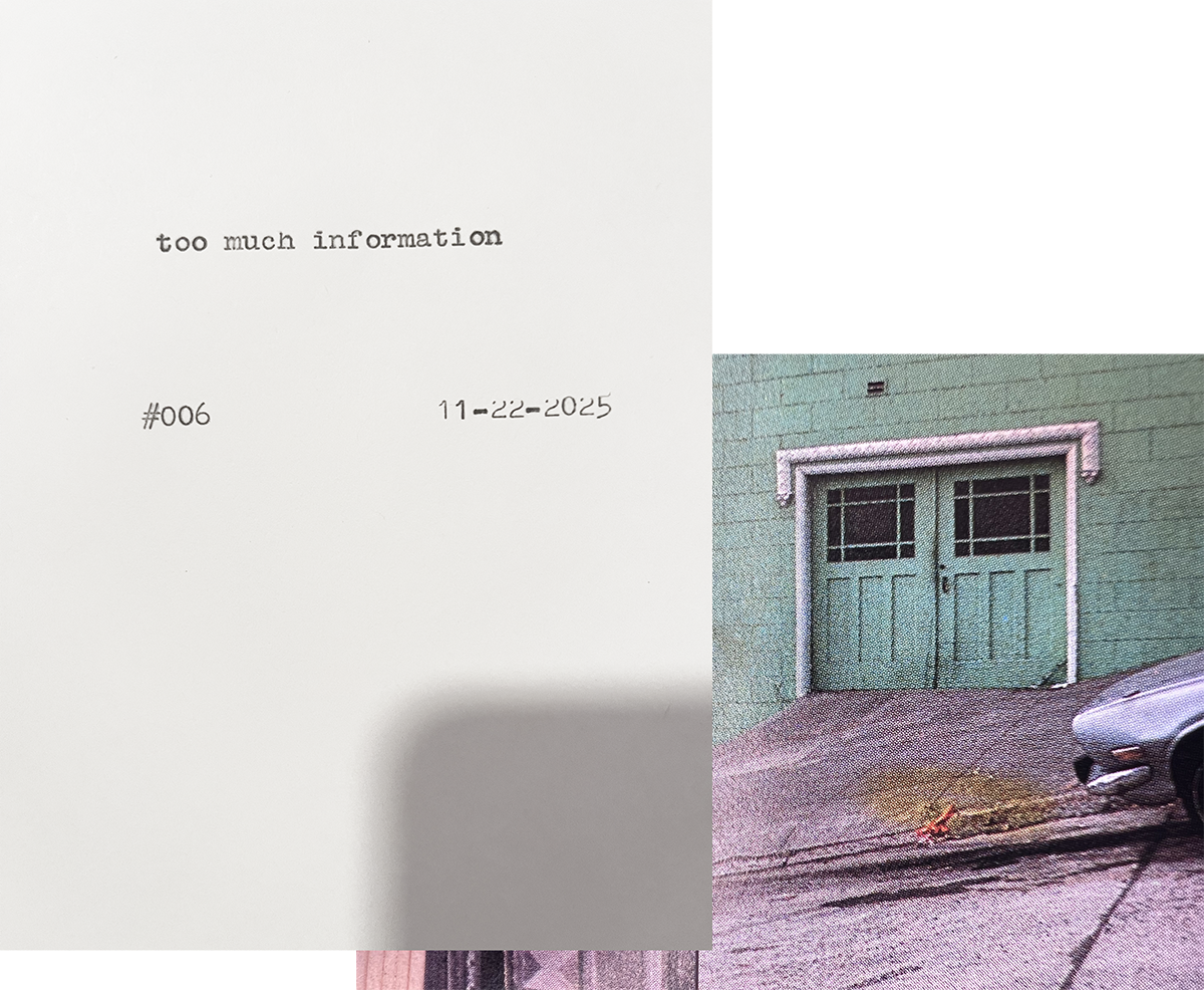 Join us for TOO MUCH INFORMATION NUMBER SIX!Saturday November 22"Perception as Participation" |